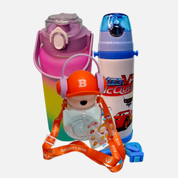 3-in-1 Motivational Transparent Water Bottle Set (2000ml + 1000ml + 300ml) | Time-Marked Leakproof Sipper Bottle for Gym, Kids & Office