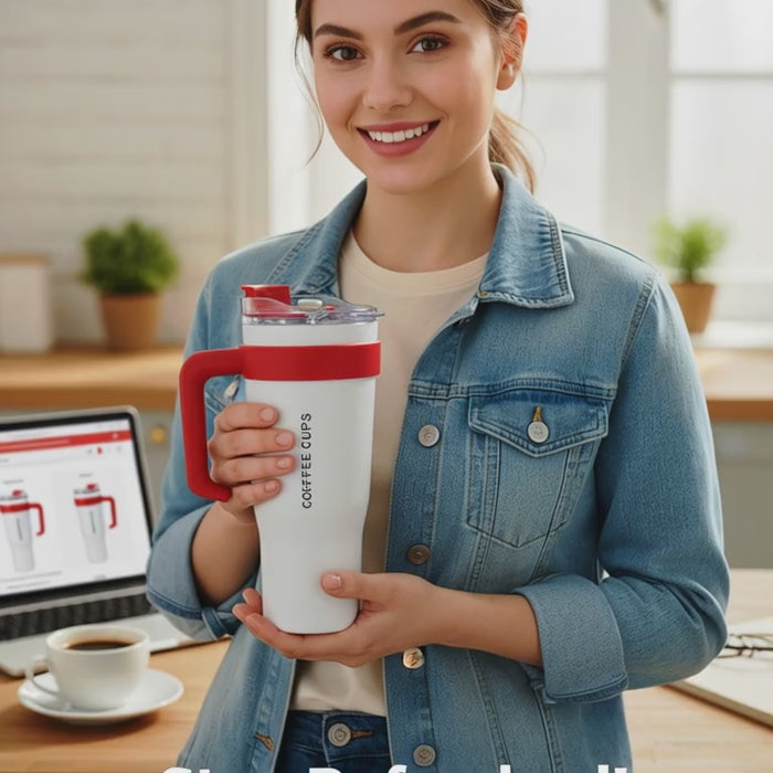 1200ML Premium Stainless Steel Coffee Cup Insulated Tumbler with Straw | Hot & Cold Leak-Proof Coffee Mug | BPA-Free Double Wall Travel Bottle for Office, Gym, Kids & Travel