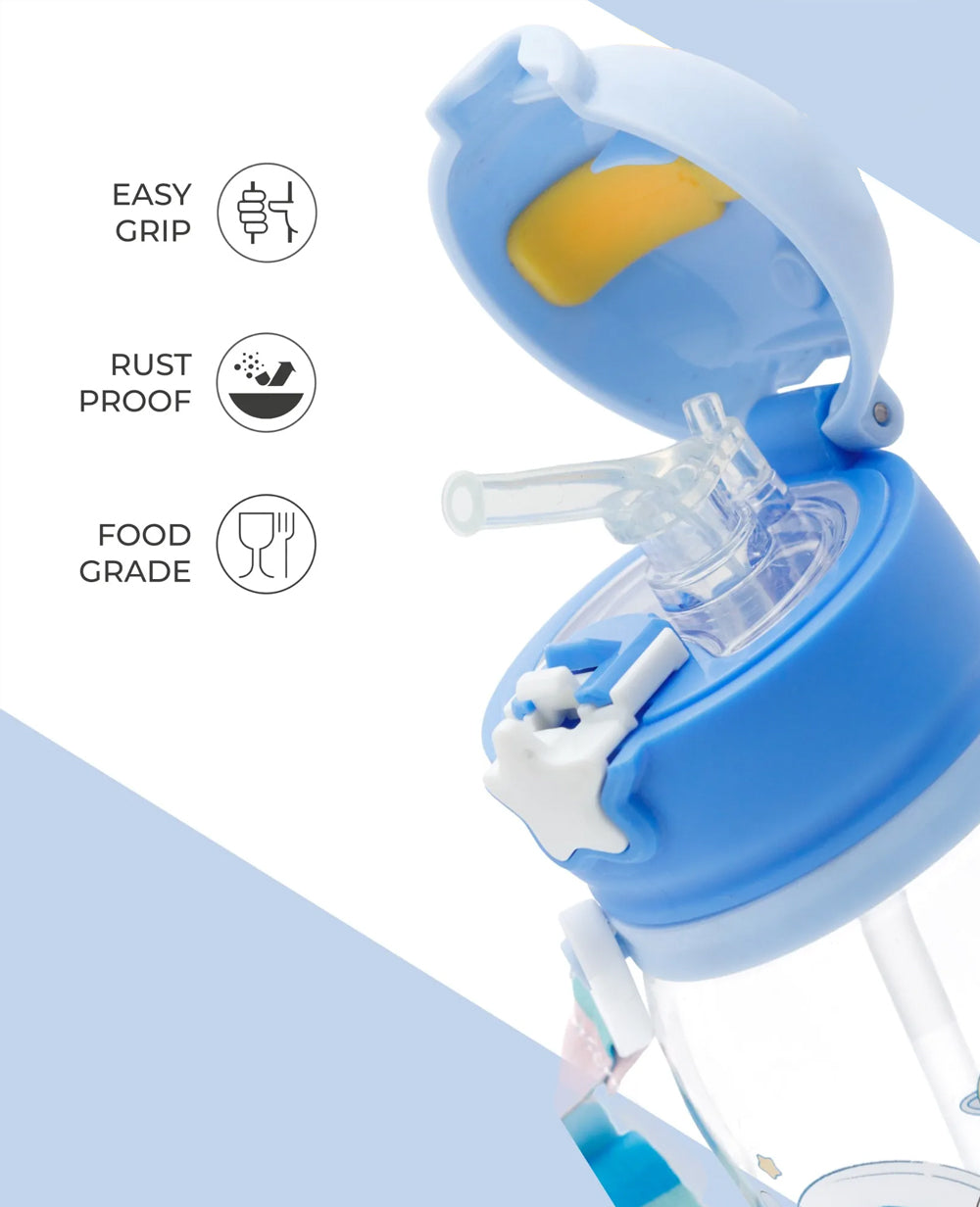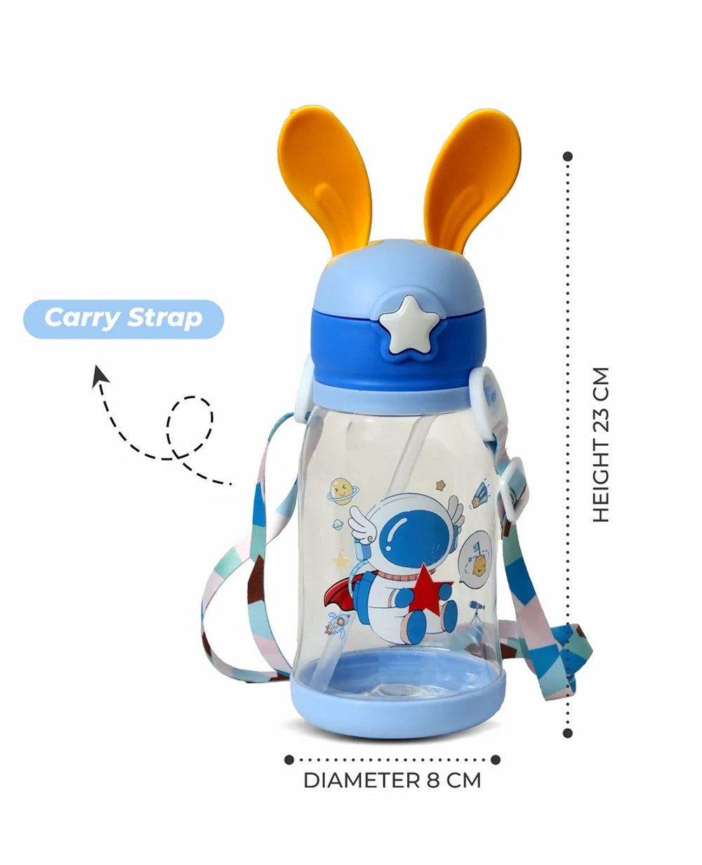 Cute Cartoon Rabbit Ear Kids Sipper Water Bottle 500ml – BPA-Free, Spill-Proof, School & Travel Bottle - Purple